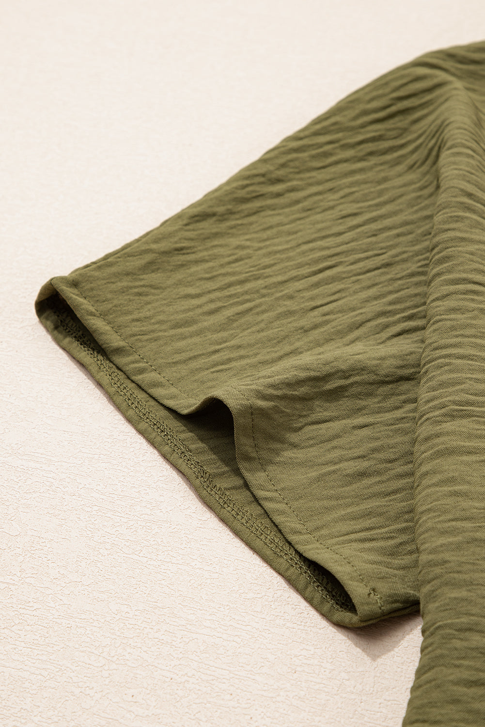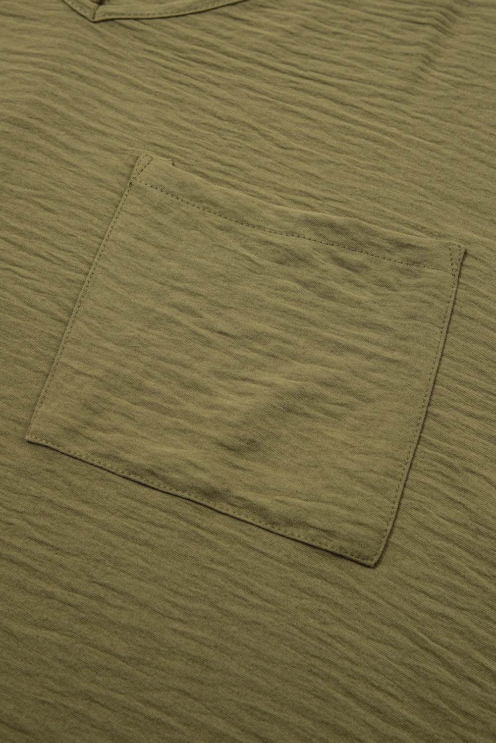 Four Leaf Clover Textured Half Sleeve V Neck Plus Size T Shirt with Chest Pocket
